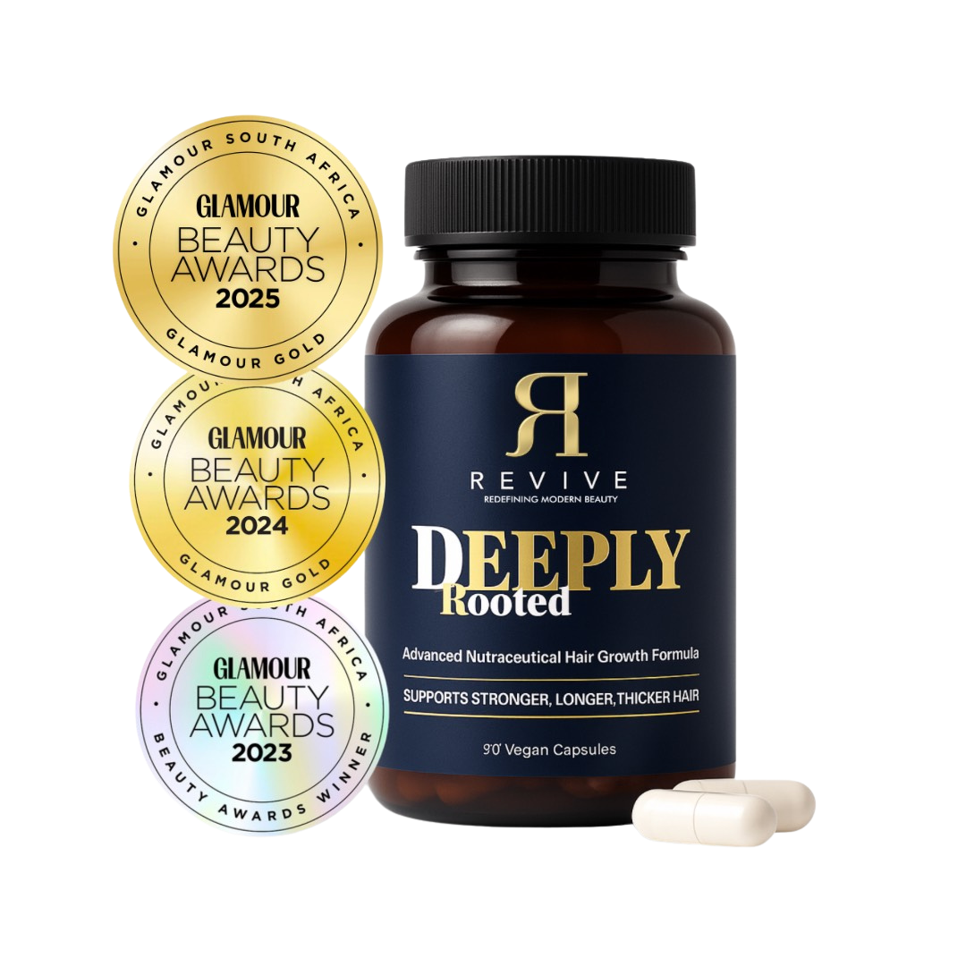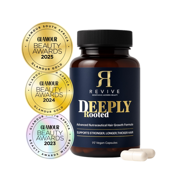 Revive Lab SA's Deeply Rooted Hair Growth Capsules are a powerful, award-winning, vegan supplement designed to promote visibly stronger, longer, and thicker hair. Scientifically formulated with clinically-proven ingredients, these capsules nourish hair from root to tip for both men and women.