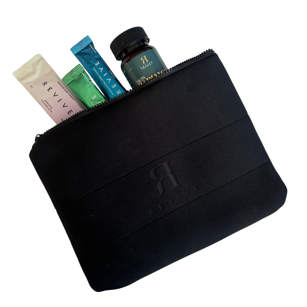 Designed with a clean silhouette and finished with an embossed REVIVE logo, this pouch is the perfect blend of functionality and elevated style.